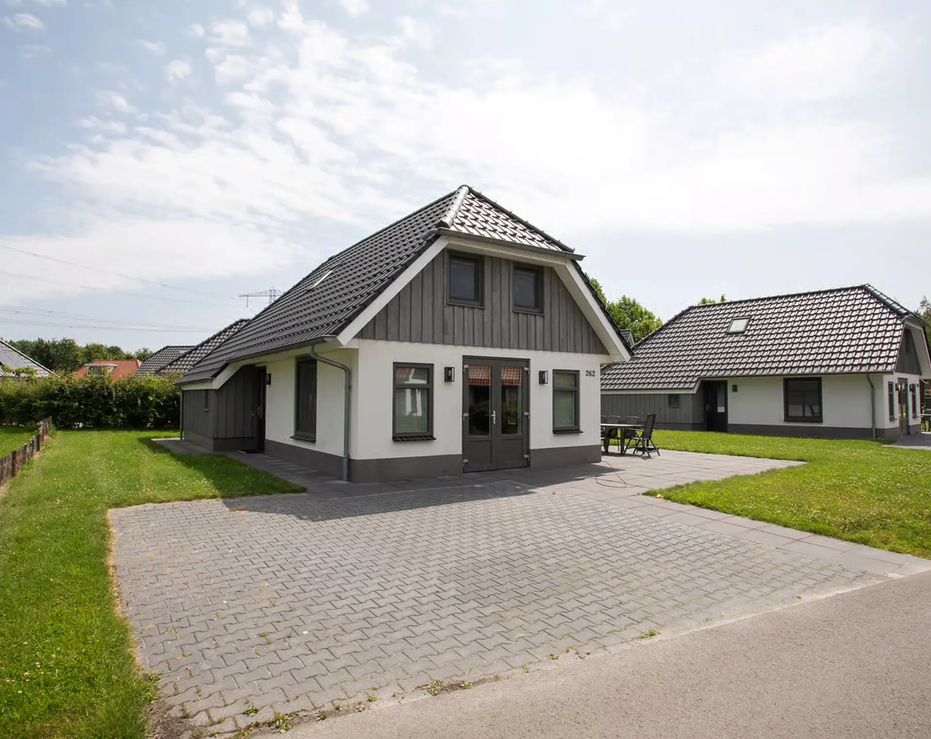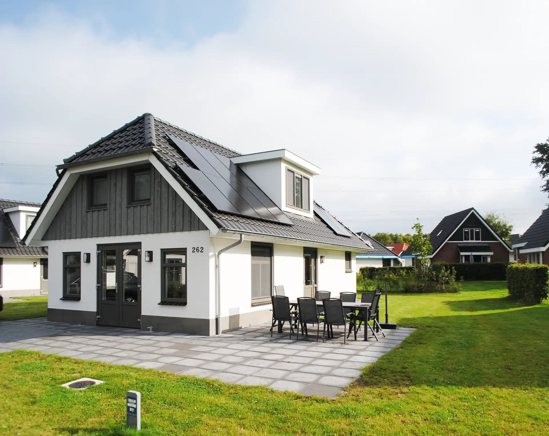 In deze vakantiebungalow kunt u comfortabel verblijven met maximaal 6-8 personen. De woning beschikt over een ruime woonkamer met zithoek voorzien van airconditioning, een compleet ingerichte keuken met vaatwasser, 3 slaapkamers en 2 badkamers met wasmachine en droger. Op de begane grond vindt u een tweepersoon slaapkamer met eigen badkamer, ideaal als u met meerdere generaties reist. Buiten geniet u van uw eigen tuin met terras en twee privéparkeerplaatsen. De parkeerplaats bij de woning is voorzien van een laadpaal voor elektrische auto’s. De bungalow is huisdiervrij, rookvrij en voorzien van energielabel A++ – een duurzaam en zorgeloos verblijf voor u en uw gezelschap.